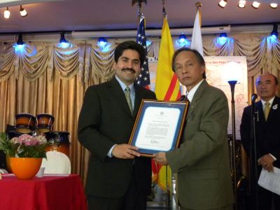 WESTMINSTER (VB) - "Lá cờ cũ của Việt Nam Cộng Hòa, với ba sọc đỏ trên nền màu vàng, và được thành lập từ năm 1948, đã, đang và sẽ tiếp tục là một biểu tượng của khả năng phục hồi, tự do, và dân chủ của nhiều người Mỹ gốc Việt ở California,…" đó là một trích đoạn trong lá thư của Thống Đốc California Jerry Brown công nhận lá cờ Vàng Ba Sọc Đỏ của Việt Nam Cộng Hòa mà Dân Biểu Tiểu Bang địa hạt 69 Jose Solorio đã công bố tại cuộc họp báo trưa Thứ Sáu, ngày 28 tháng 10 năm 2011 tại Câu Lạc Bộ Văn Hóa và Báo Chí (Quán Zen) trên đường Bolsa, thành phố Westminster. Mở đầu buổi họp báo là nghi thức chào quốc kỳ và hát quốc ca Hoa Kỳ, Việt Nam Cộng Hòa và phút mặc niệm. Ông Khanh Nguyễn, đại sứ thiện chí của thành phố Santa Ana, đã trình bày diễn tiến của cuộc vận động của cộng đồng người Việt tị nạn CS tại nam và bắc Cali để yêu cầu Thống Đốc Jerry Brown tiếp tục công nhận lá cờ vàng 3 sọc đỏ Việt Nam Cộng Hòa như là biểu tượng của Tự Do và Di Sản của người Việt tự do. Ông Khanh cũng đã giới thiệu Dân Biểu Jose Solorio, vị dân biểu có nhiều đóng góp cho cộng đồng Việt tị nạn tại Quận Cam. Trong lời phát biểu, Dân Biểu Jose Solorio nói rằng, "Tôi rất cảm tạ sự đáp ứng nhanh chóng của Thống đốc về việc yêu cầu của tôi để chính thức công nhận lá cờ của Việt Nam Cộng Hòa, để đáp ứng nguyện vọng của đa số người Mỹ gốc Việt trong tiểu bang. Tôi hiểu tầm quan trọng đối với cộng đồng Việt Nam, khi lá cờ vàng ba sọc đỏ này được công nhận là biểu tượng của cộng đồng người Mỹ gốc Việt ở California, bởi vì lá cờ này là biểu tượng của tự do, dân chủ, đoàn kết và hy vọng." DB Solorio cũng trình bày cho biết khi được tin cựu Thống Đốc Arnold Schwarzenegger công nhận ngày 2 tháng 9 là quốc khánh của cộng đồng người Việt, ông đã cùng với đại diện của cộng đồng cực lực phản đối về việc này. Ông cũng là vị dân cử đệ nạp nghị quyết ACR-40 và ACR-63 được quốc hội tiểu bang thông qua để ghi nhận những đóng góp giá trị của cộng đồng người Mỹ gốc Việt cho tiểu bang. Nghị quyết cũng đã công nhận tháng 4 hàng năm là tháng vinh danh người Mỹ gốc Việt trên toàn tiểu bang California. DB Jose Solorio cũng đã đọc thư của Thống Đốc Jerry Brown, trong đó có đoạn viết rằng, "Những người Mỹ gốc Việt vẫn luôn chú tâm đến việc chống lại sự chuyên chế của tất cả các hình thức, tích cực hỗ trợ nhân quyền cho tất cả mọi người, và tôn trọng các nguyên tắc của nền dân chủ, công lý, và khoan dung mà quốc gia của chúng tôi đã có từ khi được thành lập. Lá cờ củ của Việt Nam Cộng Hòa, với ba sọc đỏ trên nền màu vàng, và được thành lập từ năm 1948, đã, đang và sẽ tiếp tục là một biểu tượng của khả năng phục hồi, tự do, và dân chủ của nhiều người Mỹ gốc Việt ở California. Lá cờ củ của Việt Nam Cộng Hòa là một biểu tượng quan trọng trong lịch sử của người Mỹ gốc Việt và bây giờ được gọi lá cờ Tự do và Di sản của người Việt Nam." Nhân đó, DB Solorio đã trao bản gốc của lá thư của Thống Đốc Cali cho nhà báo Lý Kiến Trúc, đại diện Câu Lạc Bộ Văn Hóa và Báo Chí, để giữ làm di sản cho cộng đồng người Việt tị nạn CS. Luật sư Nguyễn Xuân Nghĩa, Chủ Tịch Cộng Đồng Người Việt Quốc Gia Nam Cali, phát biểu cảm tưởng nói rằng từ lâu cộng đồng người Việt tị nạn CS rất quan tâm đến vấn đề cờ vàng 3 sọc đỏ VNCH được chính thức công nhận trên toàn tiểu bang được tiếp tục với tân thống đốc. Luật sư Nguyễn Xuân Nghĩa cho biết Cộng Đồng Người Việt Quốc Gia Nam Cali đã viết thư cám ơn Thống Đốc Jerry Brown qua lá thư công nhận cờ vàng 3 sọc đỏ VNCH vào ngày 25 tháng 10 vừa qua. Trong thư cám ơn của Cộng Đồng Người Việt Quốc Gia Nam Cali gửi cho thống đốc có đoạn viết rằng, "Sự công nhận Lá Cờ Tự Do và Di Sản của người Việt Nam của Ngài là một xác quyết mạnh mẽ về sự phát triển và đóng góp của cộng đồng người Mỹ gốc Việt trong các lãnh vực lịch sử, văn hóa, giáo dục, và kinh tế cho tiểu bang California." Hòa Thượng Thích Chơn Thành, Viện Chủ Chùa Liên Hoa thành phố Garden Grove, trong lời phát biểu, nói rằng "Hôm nay chúng ta tiếp nhận một văn kiện rất quan trọng đó là thư của Thống Đốc California Jerry Brown công nhận lá cờ vàng 3 sọc đỏ VNCH. Thay mặt cho cộng đồng Phật Giáo Việt Nam tôi xin cám ơn ông Thống Đốc Cali, ông Dân Biểu Jose Solorio về việc công nhận lá cờ Việt Nam Cộng Hòa." Trong phần giới thiệu quan khách tham dự, nhà báo Lý Kiến Trúc cho biết gồm có DB Jose Solorio, Nghị Viên Thành Phố Fountain Valley Michael Võ, Hòa Thượng Thích Chơn Thành, Hòa Thượng Thích Giác Sỹ, ông Lại Thế Hùng (Chủ Tịch Cộng Đồng Người Việt Quốc Gia Châu Âu), ông Phan Kỳ Nhơn ( Liên Ủy Ban Chống Cộng Sản Và Tay Sai), Luật Sư Nguyễn Xuân N