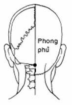 Ở đáy sọ (chẩm) sẽ sờ thấy một điểm đau hoặc nhiều hơn, dài xuống cột sống. Ấn vào những huyệt này vì mỗi huyệt sẽ tăng lực cho cơ thể hoạt động. Sau cùng, tới vùng đáy sọ (huyệt Phong phủ), dùng ngón tay cái và ngón giữa ấn, xoa, bóp cho đến khi hết đau. Rồi chạy tay dài xuống 2 bên cột sống làm cho bắp thịt bớt căng thẳng.