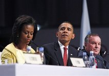 (Vợ chồng tổng thống Barack Obama và ông Richard Daley, thị trưởng thành phố Chicago, tại IOC).