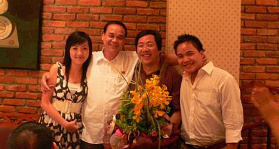 Con dâu, bố chồng (Nguyễn Ðức Nhanh), bố vợ (Nguyễn Thanh Sơn, thứ trưởng Ngoại giao CSVN), Nguyễn Ðức Quang tự Quang béo (từ trái sang phải).