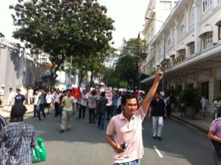 Trong hình là đoàn người biểu tình trước Nhà hát lớn Quận 1) * Hà Nội: Nguồn tin của Người Việt Lúc 11 giờ sáng
