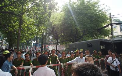Dàn bảo vệ chặn người biểu tình trước Nhà Văn Hóa Thanh Niên. (Hình: Trâm Anh Ken) Quang cảnh trên đường Phạm ngọc Thạch. (Hình: Trâm Anh Ken) Đoàn biểu tình và người đi đường. (Hình: Trâm Anh Ken) Đoàn biểu tình tuần hành.(Hình: Trâm Anh Ken) Nguồn tin của Người Việt lúc 11 giờ sáng Theo như lời nhà văn Đào Hiếu thì cuộc biểu tình ở Sài Gòn năm nay diễn ra rất ôn hòa, mặc dù có vài xây xát nhẹ. Nhưng cuộc biểu tình diễn ra rất tốt. Hoàn toàn khác với Hà Nội Hiện nay, ở Sài Gòn đã bao vây Tòa lãnh sự TQ. Và công an không can thiệp mạnh tay như ở Hà Nội. Người biểu tình ở Sài Gòn có tăng thêm số lượng. Số người tăng cường này chủ yếu là sinh viên Lực lượng côpng an đông tương đương với đoàn biểu tình. Trong đó có cả bộ đội thành phố và quân khu 7. Có một điều đặc biệt là gần như người biểu tình lần này không sợ công an. Họ không chống công an nhưng không tỏ ra sợ hãi như lần trước. Và lực lượng sinh viên ở Sài Gòn rất đông. Tỉ lệ biểu ngữ: 5 người có 1 người, như khẩu hiệu và biểu ngữ mọi năm. Đoàn Sài Gòn hiện nay bắt đầu giảm số lượng. Theo như người chứng kiến là do một số sinh viên nữ chịu nóng không nổi phải rút lui. Tin từ AnhBaSam Bùng nổ lớn, không khí biểu tình hiện rất rất sôi nổi. Lực lượng an ninh gần như bất lực trước số lượng áp đảo của đoàn người biểu tình. Tin chưa kiểm chứng cho biết, lực lượng biểu tình đã lên đến gần chục ngàn người Nhà nghiên cứu Đinh Kim Phúc cho biết, một đoàn tuần hành có các ông Lê Hiếu Đằng, Nguyễn Đình Đầu, các thành viên Câu lạc bộ Phao Lồ Nguyễn Văn Bình với khẩu hiệu “Hòa bình&Công lý cho Biển Đông … đang tiến về tòa Lãnh sự TQ. Lúc 09:10 :Ít nhất 3000 người đang tuần hành, chật kín đoạn đường Hàn Thuyên và bên hông nhà thờ Đức Bà. Đoàn người đang tiếp tục tuần hành quanh khu vực Lãnh sự quán Trung Quốc Nhiều tiếng hô đả đảo Trung Quốc vang dội, nhân dân đủ mọi tầng lớp cùng đoàn kết trong không khí sục sôi lòng yêu nước.Nhiều tiếng hô Hoàng Sa - Trường Sa - Việt Nam vang trời Đả đảo Trung Quốc - Đả đảo Trung Quốc-Đả đảo Trung Quốc * Nguồn tin của Người Việt Riêng đoạn đường từ nhà thờ Đức Bà đến Ủy Ban Thành phố đã phong tỏa. Không có xe cộ qua lại và các barrie cũng đã được dùng tới để vây người biểu tình vào khu vực riêng. Đã bắt đầu có xô xát nhẹ giữa công an và những người biểu tình thuộc nhóm nhà báo, nhà văn.