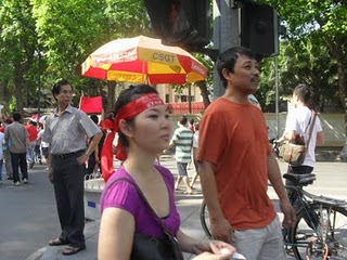 - Sài Gòn : Lượng người tập trung được mô tả là "rất đông", có thể lên tới hàng trăm người. Nhiều hàng rào chắn đã được thiết lập, xe cộ không thể vào được. - Hà Nội : đã bắt đầu biểu tình, khoảng 300 người, bao gồm thanh niên, cựu chiến binh... đang tuần hành dọc theo đường Điện Biên Phủ, hướng về Cửa Nam