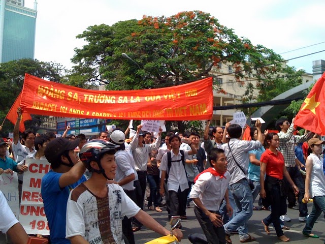 * Lúc 09:10 : - Sài Gòn : Ít nhất 3000 người đang tuần hành, chật kín đoạn đường Hàn Thuyên và bên hông nhà thờ Đức Bà. Đoàn người đang tiếp tục tuần hành quanh khu vực Lãnh sự quán Trung Quốc Nhiều tiếng hô đả đảo Trung Quốc vang dội, nhân dân đủ mọi tầng lớp cùng đoàn kết trong không khí sục sôi lòng yêu nước.Nhiều tiếng hô Hoàng Sa - Trường Sa - Việt Nam vang trời Đả đảo Trung Quốc - Đả đảo Trung Quốc-Đả đảo Trung Quốc