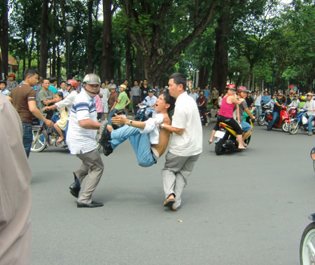 Nhiều người đã bị an ninh tấn công, vu oan “móc túi” rồi bắt khiêng đi như bắt thú vật quanh Nhà thờ Đức Bà ở Saìgòn trước mắt người nước ngòai trông rất xấu xa, bỉ ổi. Rất may không có xô xát lớn, nhưng hình ảnh nhiều hàng lớp công an, cảnh sát được huy động bảo vệ Tòa Tổng lãnh sự của Bắc Kinh gần dinh Độc Lập cũ ở Sài Gòn, ngăn cấm dân không được đến gần rất lộ liễu.