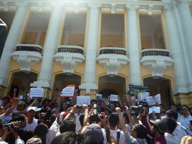 CỦA NHÂN DÂN VIỆT NAM YÊU NƯỚC GỬI NHÀ CẦM QUYỀN TRUNG QUỐC PHẢN ĐỐI HÀNH ĐỘNG XÂM PHẠM NGHIÊM TRỌNG CHỦ QUYỀN Hôm nay, tại trung tâm thủ đô Hà Nội của nước Việt Nam ngàn năm văn hiến, chúng tôi, những người tham gia biểu tình đại diện cho hàng triệu người dân Việt Nam yêu nước ở trong và ngoài nước cùng gửi tới nhà cầm quyền Trung Quốc tuyên bố như sau: - Cực lực lên án và tố cáo trước dư luận trong nước và quốc tế việc nhà cầm quyền Trung Quốc đã nổ súng và chiếm đóng phi pháp quần đảo Hoàng Sa của Việt Nam trong các năm từ 1956 đến 1974 cũng như 9 đảo ở Trường Sa của Việt Nam trong các năm từ 1988 đến 1992. Phản đối! (sau đó mọi người hô theo 2 lần: Phản đối, Phản đối). - Cực lực lên án và phản đối nhà cầm quyền Trung Quốc liên tục có những hành động gây hấn nhằm xâm chiếm Biển Đông, liên tục bắt bớ cướp bóc, phá hoại tàu bè của ngư dân Việt Nam; cắt cáp tàu thăm dò dầu khí của Việt Nam với ý đồ biến vùng đặc quyền kinh tế, vùng biển của Việt Nam thành vùng tranh chấp để hưởng lợi; diễn tập quân sự, điều tàu chiến lớn đến Biển Đông, đe dọa hòa bình an ninh trong khu vực. Phản đối! (sau đó mọi người hô theo 2 lần: Phản đối, Phản đối). - Kiên quyết phản đối tuyên bố chủ quyền đường lưỡi bò 9 đoạn phi pháp của Trung Quốc. Tuyên bố đó không dựa trên bất cứ luận điểm công pháp quốc tế nào, vi phạm nghiêm trọng Luật Biển và Công ước về Luật Biển (UNCLOS) của Liên Hiệp Quốc mà Trung Quốc đã ký năm 1982 cũng như vi phạm tuyên bố về ứng xử trên Biển Đông (DOC) mà Trung Quốc và ASEAN đã ký năm 2002. Phản đối! (sau đó mọi người hô theo 2 lần: Phản đối, Phản đối). - Kiên quyết phản đối những phát ngôn mang tính đe dọa và việc tuyên truyền đặt điều, xuyên tạc sự thật của nhà cầm quyền Trung Quốc đối với Việt Nam. Phản đối! (sau đó mọi người hô theo 2 lần: Phản đối, Phản đối). Chúng tôi, những người dân yêu nước Việt Nam quyết tâm làm tất cả, nguyện đem tất cả sức mình để chống lại các hành động xâm lấn hiếu chiến của nhà cầm quyền Trung Quốc, bảo vệ vững chắc chủ quyền đất, biển, đảo của Việt Nam. Đất nước Việ t Nam muôn năm! (sau đó mọi người hô theo 2 lần: muôn năm) CHÙM ẢNH CỦA NGUYỄN XUÂN DIỆN GHI LẠI NHỮNG