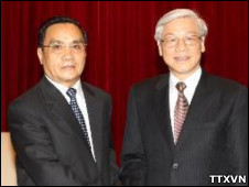 TBT Nguyễn Phú Trọng (phải) bị phê phán là 'khó có bản lĩnh để đương đầu với thực tiễn đang đầy cam go' Ông Bình mới vào Trung ương Đảng tại Đại hội XI hồi tháng Một. Hãng Dow Jones cũng nói nguồn tin của họ cho hay Bộ trưởng Tài chính Vũ Văn Ninh được thăng chức Phó Thủ tướng. Theo dự đoán của hãng này, Thứ trưởng thường trực Bộ Ngoại giao Phạm Bình Minh, con trai cố Ngoại trưởng Nguyễn Cơ Thạch, sẽ nhận chức vụ Bộ trưởng Ngoại giao. Cũng giống như Trung Quốc, Bộ trưởng Ngoại giao Việt Nam nhiều năm nay là nhân vật không có chân trong Bộ Chính trị Đảng CS. Một số bộ trưởng mới khác, cũng là "lựa chọn an toàn" bao gồm bà Nguyễn Thị Kim Tiến từ Thứ trưởng nay lên Bộ trưởng Y tế, và ông Trần Đại Quang cũng từ Thứ trưởng lên Bộ trưởng Công an. Di chuyển bàn cờ? Một câu hỏi giới quan sát đặt ra là một khi ông Trần Đại Quang, người vừa được bầu vào Bộ Chính trị tại Đại hội XI, làm bộ trưởng, thì ông Lê Hồng Anh, bộ trưởng đương nhiệm, sẽ được chuyển dịch đi vị trí nào. Giới thạo tin đồn đoán việc ông có thể trở thành Thường trực Ban Bí thư Trung ương, thay cho ông Trương Tấn Sang, người sẽ giữ chức Chủ tịch nước. Ông Trương Tấn Sang được cho là gương mặt đầy quyền lực, nhất là trước Đại hội XI, khi nhiều người cho rằng ông có khả năng "vượt qua" ông Nguyễn Tấn Dũng để trở thành thủ tướng. Thực tế trong cuộc bầu chọn Ban Chấp hành Trung ương khóa XI, ông Sang đã giành nhiều phiếu hơn ông Dũng. Theo Giáo sư Thayer, ông Trương Tấn Sang tuy không thành thủ tướng nhưng được ủng hộ của nhiều người trong Đảng và có thể là nhân vật có khả năng đối trọng lại các quyết định của Thủ tướng Nguyễn Tấn Dũng. "Trong kịch bản ông Lê Hồng Anh thay thế ông Trương Tấn Sang giữ chức Thường trực Ban Bí thư, ông Sang có thể mất đi một chút quyền lực nhưng với vị trí Chủ tịch nước, ông vẫn còn ủng hộ của Đảng và vai trò đã được ghi trong Hiến pháp." Trong các bản hiện lưu truyền trên mạng gọi là "phương án nhân sự" của Ban lãnh đạo tới hiện vẫn nêu tên hai ông Hoàng Trung Hải và Nguyễn Thiện Nhân ở các vị trí Phó Thủ tướng dù có những chỉ trích từ dư luận về cách điều hành mảng công việc của họ. Ông Nguyễn Thiện Nhân nay đã rời mảng giáo dục để có thể nắm luôn cả Văn hóa - Xã hội - Giáo dục trong khi ông Hải có cơ hội thành Phó Thủ tướng thường trực.
