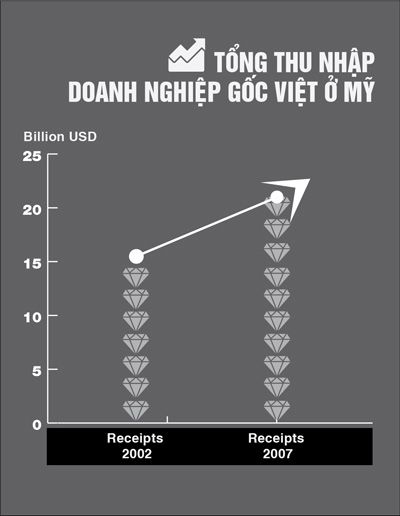 Cứ 100 người gốc Việt tại Mỹ, có 12 người sống ở mức nghèo khó. Theo tiêu chuẩn này, cộng đồng gốc Việt chỉ “giàu” hơn 2 cộng đồng gốc Á khác, là Hmong và Cambodia. (Hình: Khoa Vũ/Người Việt) Census 2010 trích dẫn thống kê của American Community Survey (ACS) phổ biến năm 2007, cho biết, so với các cộng đồng khác, di dân gốc Việt có tỷ lệ “sử dụng tiếng mẹ đẻ ở nhà” tăng mạnh nhất (511%), tính từ năm 1980 đến 2007. Về tuổi tác, ACS cho biết tuổi trung vị của cộng đồng gốc Việt là 35.4, so với 35.7 của các sắc dân Á Châu, và 36.8 của toàn quốc Hoa Kỳ. 10 Thành Phố Ðông Người Việt Nhất San Jose, California: 100,486 Garden Grove, California: 47,331 Trong tổng số gần 1.6 triệu người Việt hiện đang ở Mỹ, giới trẻ 17 tuổi trở xuống chiếm 26%, so với 44% của cộng đồng người Hmong, 28% của người Cam Bốt, và 27% của người Lào, và so với 20% của toàn quốc. Người gốc Việt trên 65 tuổi tại Hoa Kỳ chiếm 8% so với cộng đồng già nhất là Nhật Bản (22%) và so với 13% trên toàn quốc. Về gia cảnh, 57% người gốc Việt có gia đình, 31% chưa bao giờ lập gia đình, khoảng 7% ly dị, 1% ly thân, và 4% góa vợ (hoặc chồng). 22% người Mỹ gốc Việt được sinh ra tại Mỹ; số còn lại sinh ra bên ngoài nước Mỹ. (Hình: Khoa Vũ/Người Việt) Mức nghèo khó năm 2011 do chính quyền liên bang ấn định cho một gia đình 4 người là lợi tức dưới $22,350 một năm. Gia đình trung bình của người Việt có 4 người và lợi tức trung bình $59,000 một năm so với $47,000 của người Hmong (thấp nhất), $99,000 của người Ấn Ðộ (cao nhất), và $62,000 của toàn quốc. Tỷ lệ người gốc Việt trên 16 tuổi có công ăn việc làm là 67%, đứng hàng thứ Tư trong cộng đồng di dân Á Châu, vào nhỉnh hơn tỷ lệ toàn quốc, 65%. Khoảng 65% gia đình gốc Việt làm chủ căn nhà mình đang ở, (ngang với cộng đồng người Philippines) so với 48% của người Hmong và 66% của toàn quốc. Census 2010 trích dẫn bản tường trình của Survey of Business Owners (SOB) công bố năm 2007 cho biết số cơ sở thương mại do người Việt làm chủ tăng 56% từ năm 2002 đến nay so với 40% của các sắc dân Á Châu khác. Cũng theo bản tường trình năm 2007 của SOB, số cơ sở thương mại của người gốc Việt lên tới 229,000, tương đương 15% của toàn bộ di dân gốc Á, với doanh thu $28.8 tỷ một năm. Gần 30,000 trong số những cơ sở thương mại này là các công ty tạo ra công ăn việc làm, mướn tổng cộng 166 ngàn nhân viên, với doanh thu $21 tỷ trong năm 2007, tăng 82% so với năm 2002. Gần 67% cơ sở thương mại của người gốc Việt thuộc ngành bảo trì, sửa chữa, dịch vụ cá nhân, giặt giũ và bán lẻ, chiếm con số cao nhất trong nhóm di dân Á Châu. Về việc thực thi quyền công dân, nhìn chung người Mỹ gốc Á ghi danh đi bầu và thực sự đi bầu ít hơn người dân bản xứ. Census 2010 trích thống kê của Current Population Survey (CPS) công bố năm 2008 cho thấy tỷ lệ di dân gốc Á ở tuổi đi bầu khá thấp, ở mức 55% so với 71% của toàn quốc. Ðã thế, chỉ có 48% người ở tuổi này ghi danh đi bầu, so với 64% của toàn quốc. Cũng theo tài liệu của CPS, người nhập tịch Hoa Kỳ gốc Á ghi danh đi bầu đông hơn những người gốc Á sinh ra ở Mỹ. Trong 5 năm, từ 2002 đến 2007, cộng đồng doanh nghiệp gốc Việt tại Mỹ có thu nhập cao hơn. (Hình: Khoa Vũ/Người Việt) Nhìn một cách tổng quát, cộng đồng gốc Việt tại Hoa Kỳ tương đối trẻ, xét về tuổi (35.4), tỷ lệ giới trẻ từ 17 tuổi trở xuống (26%), và tỷ lệ người 65 tuổi trở lên (8%), so với các con số tương ứng 36.8, 20% và 13% cho toàn quốc. Với khuynh hướng gia đình, người gốc Việt có tỷ lệ ly dị 6%, thấp hơn tỷ lệ chung toàn quốc (11%), và đơn vị gia đình (3.9 người/gia đình) cũng đông hơn tỷ số trung bình toàn quốc, 3.1. Về đời sống kinh tế, cộng đồng gốc Việt có mức lợi tức trung bình hàng năm hơi thấp ($59,000) so với $62,000 toàn quốc. Tuy nhiên, tỷ lệ người gốc Việt làm chủ căn nhà mình đang ở là 65% so với 66% của toàn quốc cho thấy tính cần kiệm và quan điểm “an cư lạc nghiệp” của cộng đồng chúng ta. Liên lạc tác giả: This e-mail address is being protected from spambots. You need JavaScript enabled to view it