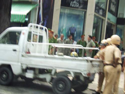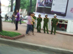 Tại các ngã tư đường, đặc biệt tại trước Nhà Văn hóa Thanh niên, rất đông công an vào mỗi sáng chủ nhật, ảnh chụp sáng ngày 14-07-2011. Courtesy Nuvuongcongly.