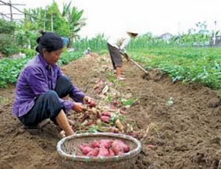 Thiếu gạo trầm trọng, nhiều hộ dân ở thôn Đông Tân, xã Đa Lộc, huyện Hậu Lộc, Thanh Hoá phải đào khoai ăn độn hàng ngày.