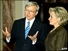 Ngoại trưởng Úc Kevin Rudd nói Hoa Kỳ có lỗi trong việc điện tín ngoại giao bị lộ trên Wikileaks chứ không phải người sáng lập trang này.